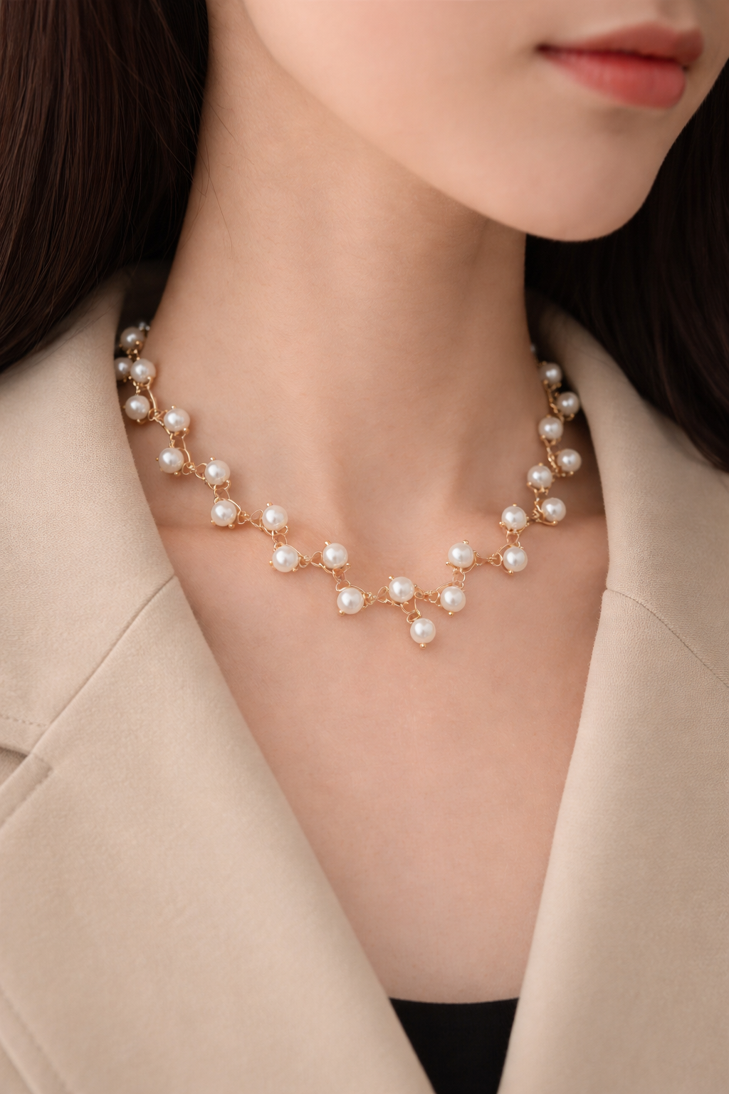 This elegant choker is perfect for Pakistani brides, office ladies, or anyone looking to elevate their everyday look. Its delicate pearl design and gold-toned metal frame make it ideal for both formal events and casual outings, especially in our warm climate where comfort meets style. Crafted from durable zinc metal alloy, this choker is built to last while maintaining its stunning appearance. The pearls are securely set to prevent loss or damage, and the adjustable size ensures a perfect fit for any neck. Whether you’re dressing for Eid, a wedding, or a business meeting, this piece adds timeless charm without compromising on comfort or quality. - Premium Quality pearls and gold-toned alloy for lasting beauty - Stylish, modern design that suits all occasions - Adjustable size for a personalized fit - Lightweight and comfortable for daily wear - New Arrival – best price in Pakistan for this season - Durable construction to withstand everyday use